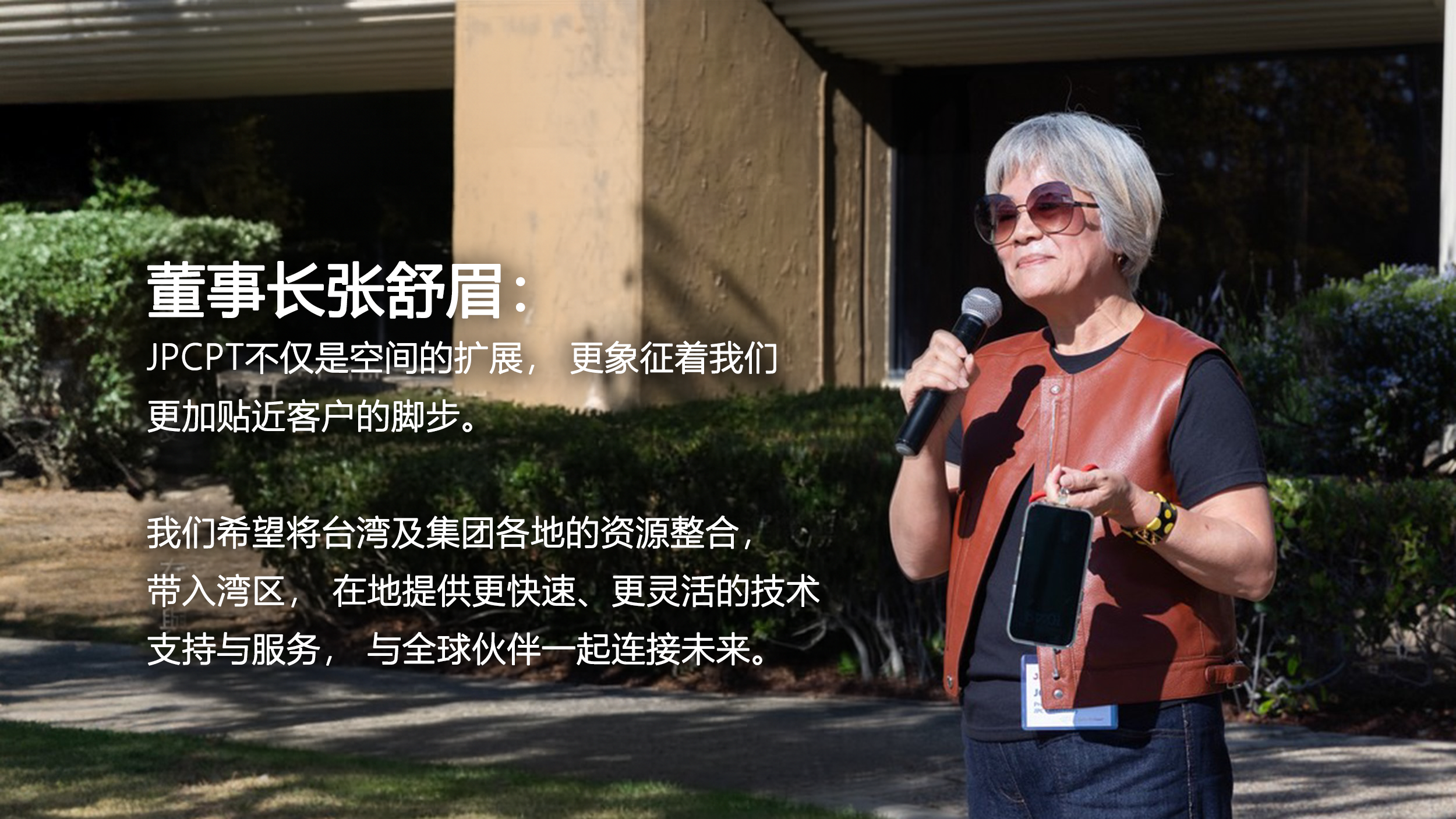 开幕仪式由董事长张舒眉与总经理张伟三主持,并邀请 JPCPT 团队代表致词,现场嘉宾包含多位来自台、美两地的策略合作伙伴与产业客户。在欢欣热闹的气氛中,与会贵宾共同见证 JPC 于北美的重要里程碑,象征公司持续深化全球供应链布局与技术服务能量。